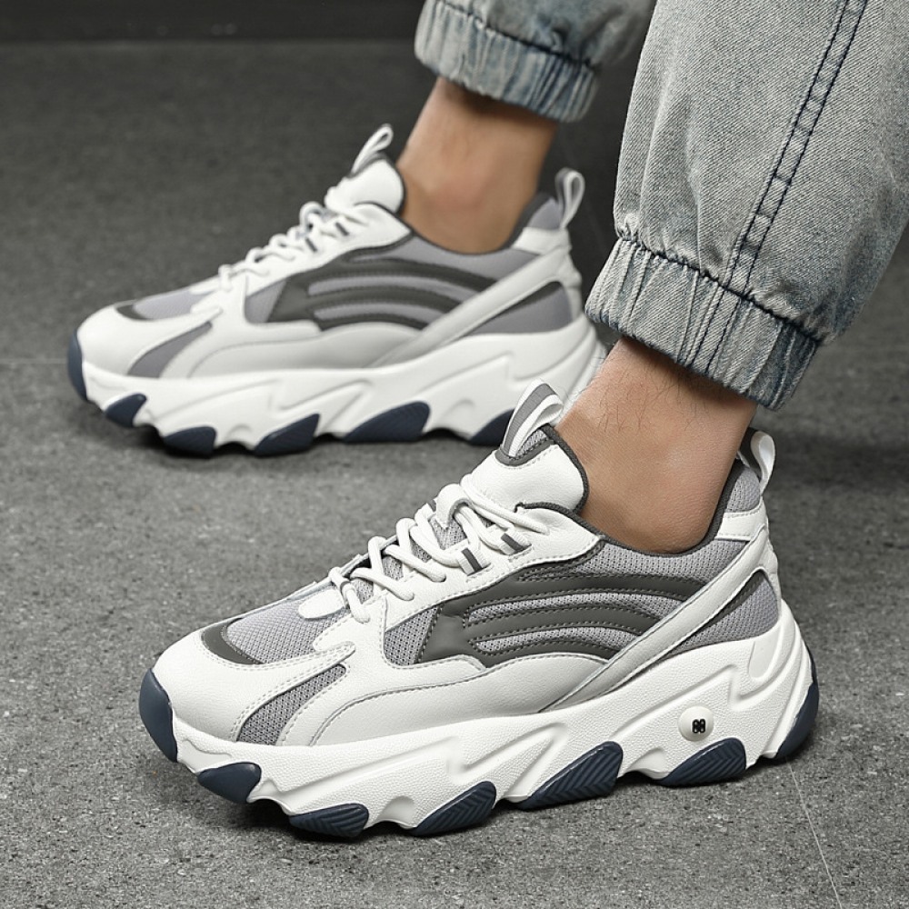 Men's Fashion Thick-Soled Lace-Up Round Toe Casual Sports Shoes