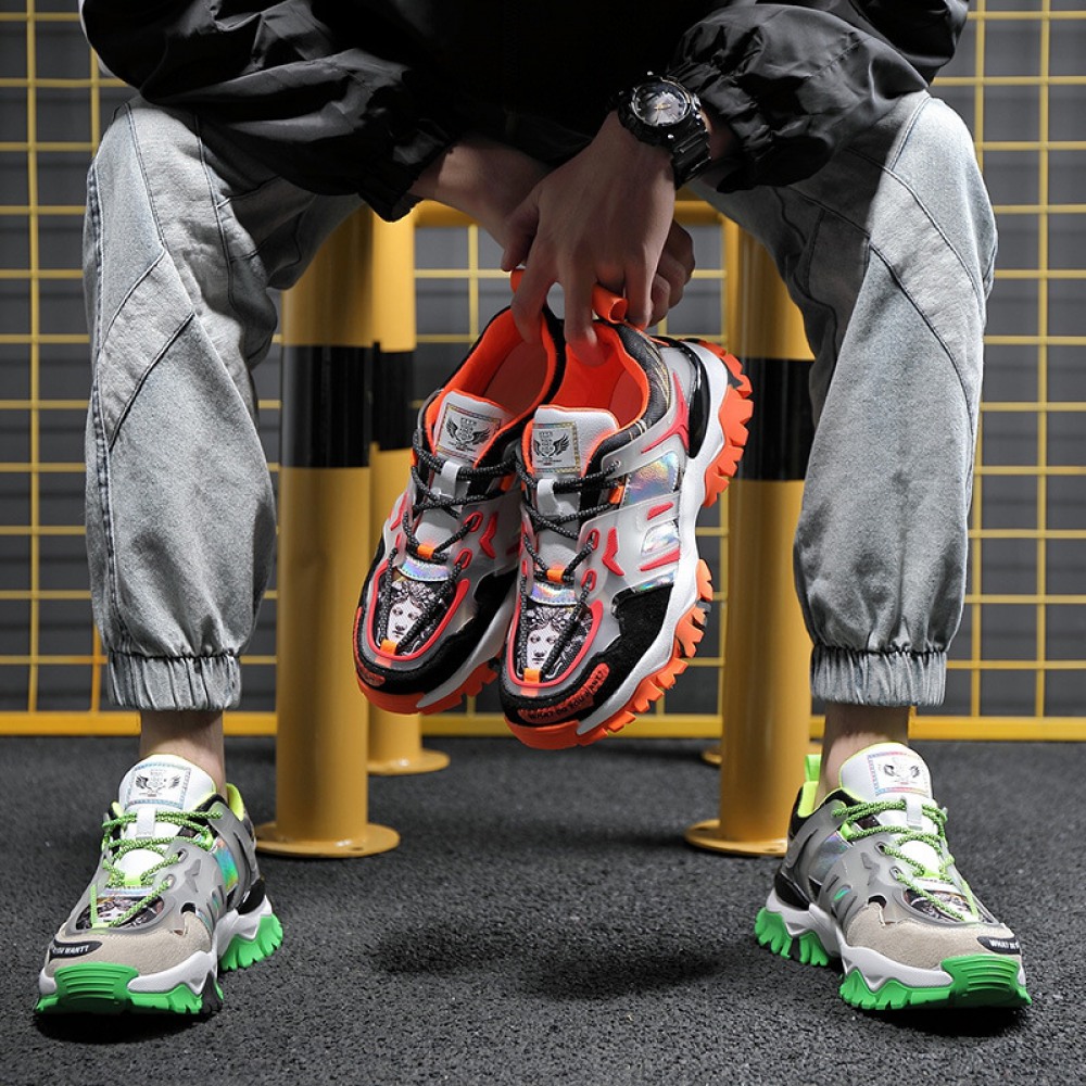 Spring New Sports Running Sneakers Thick-Soled Flying Woven Personality Hip-Hop Trendy Shoes