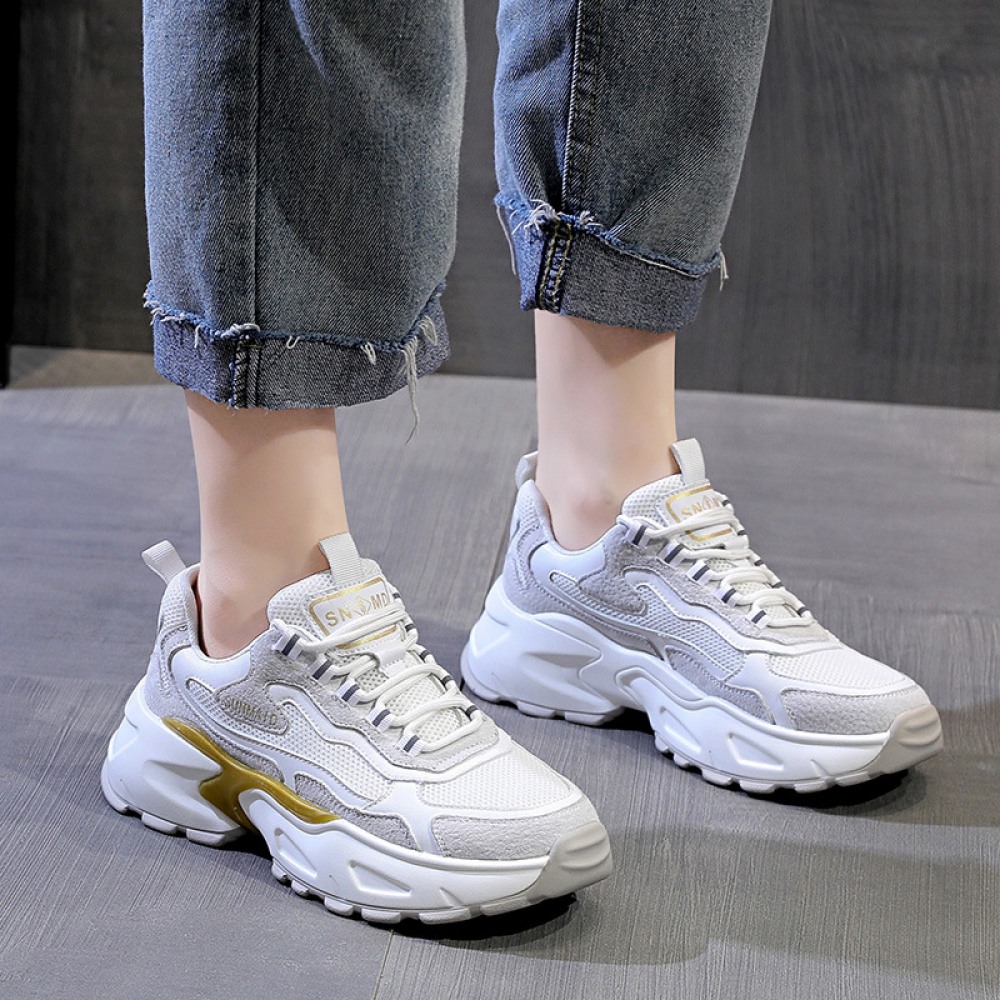 Women's Summer Breathable Thick-Soled Small Mesh Sports Casual Shoes White